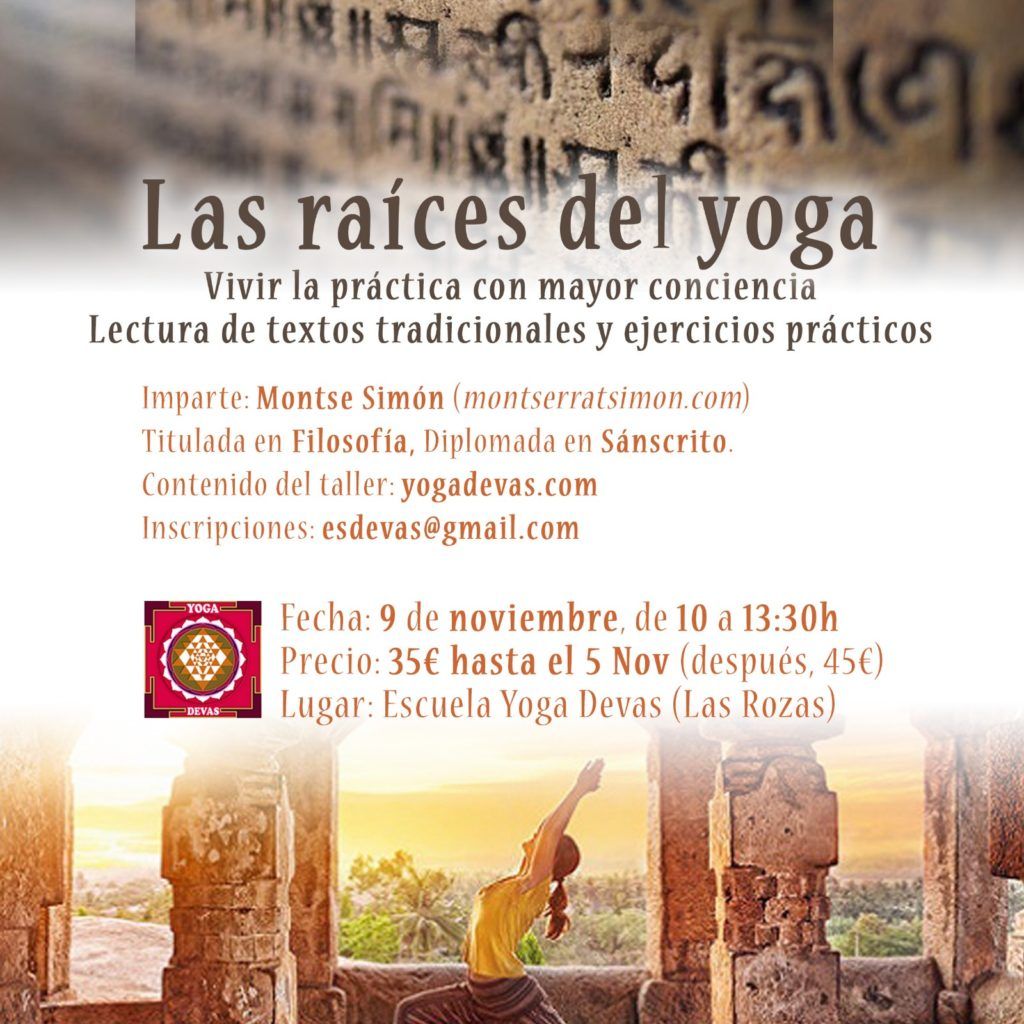 El próximo 9 de noviembre de 2019 taller para profundizar en Las raíces del yoga. Veremos algunas de las enseñanzas de los grandes sabios de la antigüedad y cómo esas enseñanzas siguen vigentes para nuestra vida cotidiana y una práctica de yoga integral que vibre en las distintas facetas de nuestra vida, más allá de la esterilla.